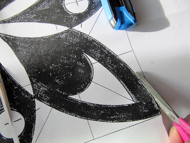 3º. Marcáis el contorno sobre el fieltro negro utilizando un rotulador permanente plata o dorado y recortamos con tijeras.